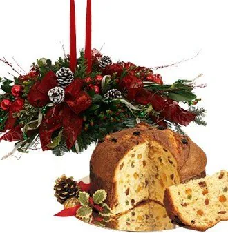 Augura un buon Natale con un centrotavola con verde decorativo e candele, abbinato ad un panettone. Adatto per le festività natalizie.