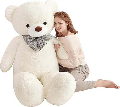 Orso Neve Gigante di 110 cm.  L'Orso Neve è realizzato con tessuto di alta qualità ed è così grande che potete usarlo per sedervi. Lasciati Avvolgere dal Candido Peluche dalle braccia Calorose e dal Pelo Soffice e Setoso. Un Regalo Sorprendente per grandi e piccoli.