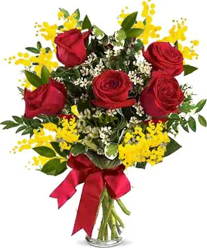 Invia Fiori a Ceranova, vendita online Mimosa con 5 Rose Rosse