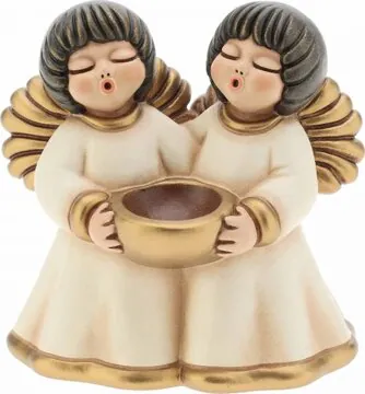 Bouquet + Thun Angeli Sissi con porta candela Medio 10 cm h; Ø 30 mm porta candela Due angeli dalle candide vesti e dalle ali dorate sorreggono con le mani un porta candela. Una preziosa creazione ceramica...