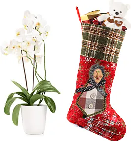 Calza Befana con Pianta di Orchidea di Prima Scelta in Elegante Confezione a Tono. Con Dolciumi e Leccornie assortite. Modello e Marca secondo Disponibilità al momento in Negozio