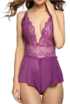 Lingerie glamour di ottima qualità realizzata in morbido tessuto viola con raffinate applicazioni di pizzo. Indicare la taglia dopo l'acquisto. Disponibile S/M/L/XL