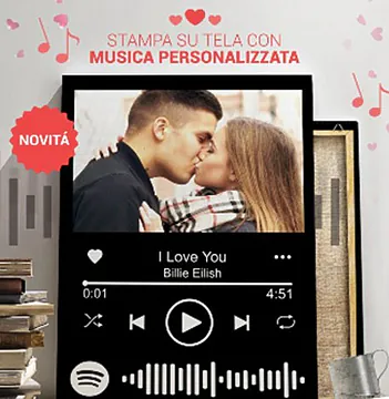 Fiori + Dedica una canzone ad una persona importante: realizza la tua Tela Spotify con la vostra foto più bella e il vostro brano del cuore. Indica nelle note il titolo del brano, il nome dell'artista, e carica la foto che desideri stampare. Apri la tua App Spotify, scansiona il codice e ascolta subito la tua canzone. Orientamento verticale. Spessore telaio: 2 cm