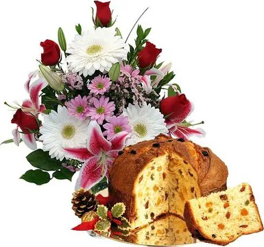 Augura un buon Natale con un bouquet di rose, lilium, gerbere e/o margherite e fiori misti di stagione confezionato con verde decorativo, abbinato ad un panettone. Adatta per le festività natalizie.