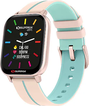 Smarwatch da donna di Superga della collezione ink. Orologio con cassa in alluminio e cinturino in silicone rosa e azzurro.