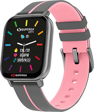 Smarwatch da donna di Superga della collezione ink. Orologio con cassa in alluminio e cinturino in silicone grigio e rosa.
