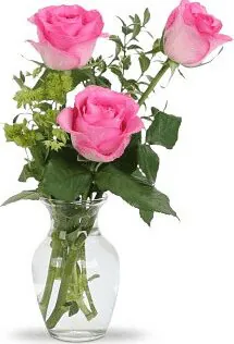 Mazzo di 3 rose rosa, confezionato con verde decorativo di stagione. Esprime amore e passione. Adatto per occasioni come nascita, amore, felicitazioni, compleanni, matrimoni, anniversari e inaugurazioni.