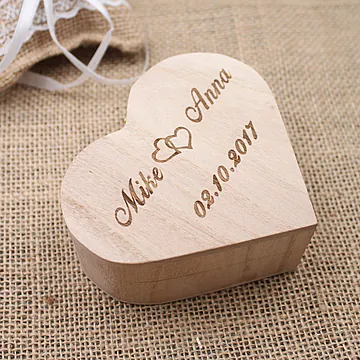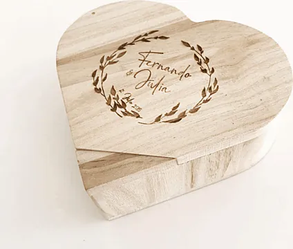 Cofanetto in Legno a Forma di Cuore con Nomi, Data o Dedica incisa. Dimensioni: 17x16x6 cm