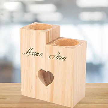 Coppia di Portacandele in Legno Personalizzabile. Dimensioni: 8x11,5x4,5 cm
