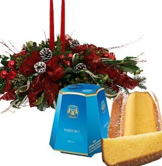 Augura un buon Natale con un centrotavola con verde decorativo e candele, abbinato ad un pandoro. Adatto per le festività natalizie.