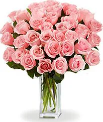 Lussuoso mazzo di 50 rose rosa, confezionato con verde decorativo di stagione. Esprime amore, allegria e felicità. Adatto per occasioni come nascita, amore, felicitazioni, compleanni, matrimoni, anniversari e inaugurazioni.