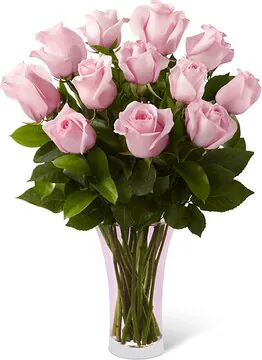 Elegante mazzo di 12 rose rosa, confezionato con verde decorativo di stagione. Esprime amore, allegria e felicità. Adatto per occasioni come nascita, amore, felicitazioni, compleanni, matrimoni, anniversari e inaugurazioni.
