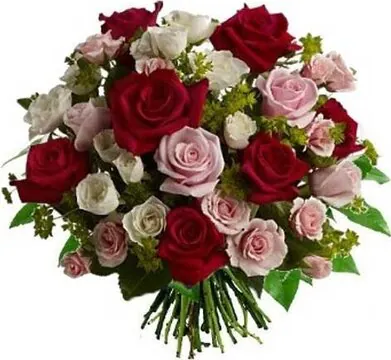 Mazzo di roselline dai toni misti, confezionato con verde decorativo di stagione. Esprime amore e purezza. Adatto per occasioni come nascita, amore, felicitazioni, compleanni, matrimoni, anniversari e inaugurazioni.
