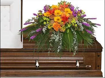 Invia Fiori a Wivelsfield Green, vendita online Cuscino funebre di rose, lilium, gerbere e fiori misti dai toni accesi