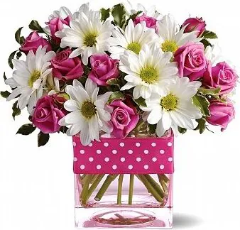 Invia Fiori a Helotes, vendita online Roselline e margherite o gerbere dai toni bianchi e viola