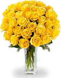 Lussuoso mazzo di rose gialle, confezionato con verde decorativo di stagione. Esprime amore, allegria e felicità. Adatto per occasioni come nascita, amore, felicitazioni, compleanni, matrimoni, anniversari e inaugurazioni.